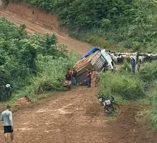 Altamira: Carreta tomba em ladeira próximo ao bairro cidade nova