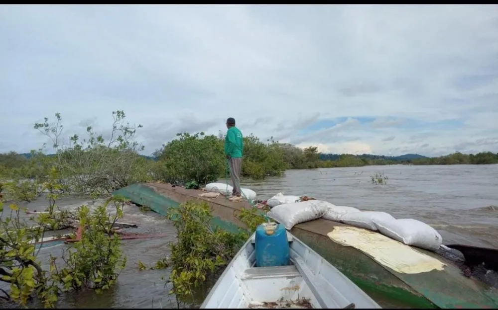 Balsa carregada com castanha-do-Pará naufraga no rio Xingu em Altamira
