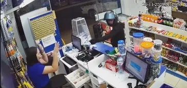 o criminoso teve parte do rosto registrado pelas câmeras de segurança. As imagens podem ajudar a polícia a identificar e prender o autor do assalto