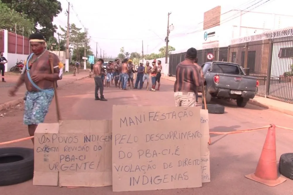 Indígenas bloqueiam estrada do aeroporto em protesto frente ao escritório da Norte Energia em Altamira