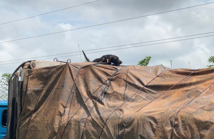 PRF resgata cadela que era transportada amarrada sobre caminhão na BR-230