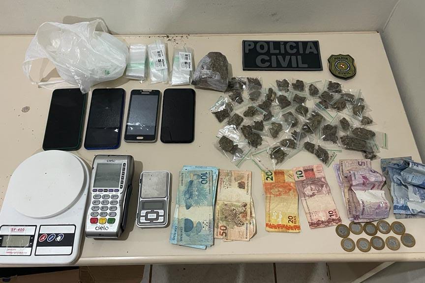 Com o suspeito a Polícia Civil apreendeu8 drogas, arma e munições