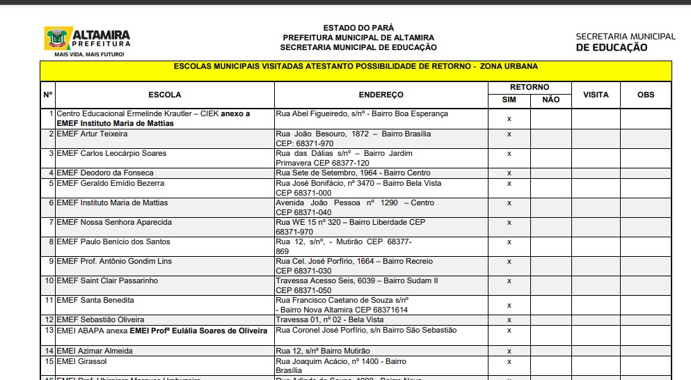 Confira as escolas que retomarão atividades no próximo dia 13