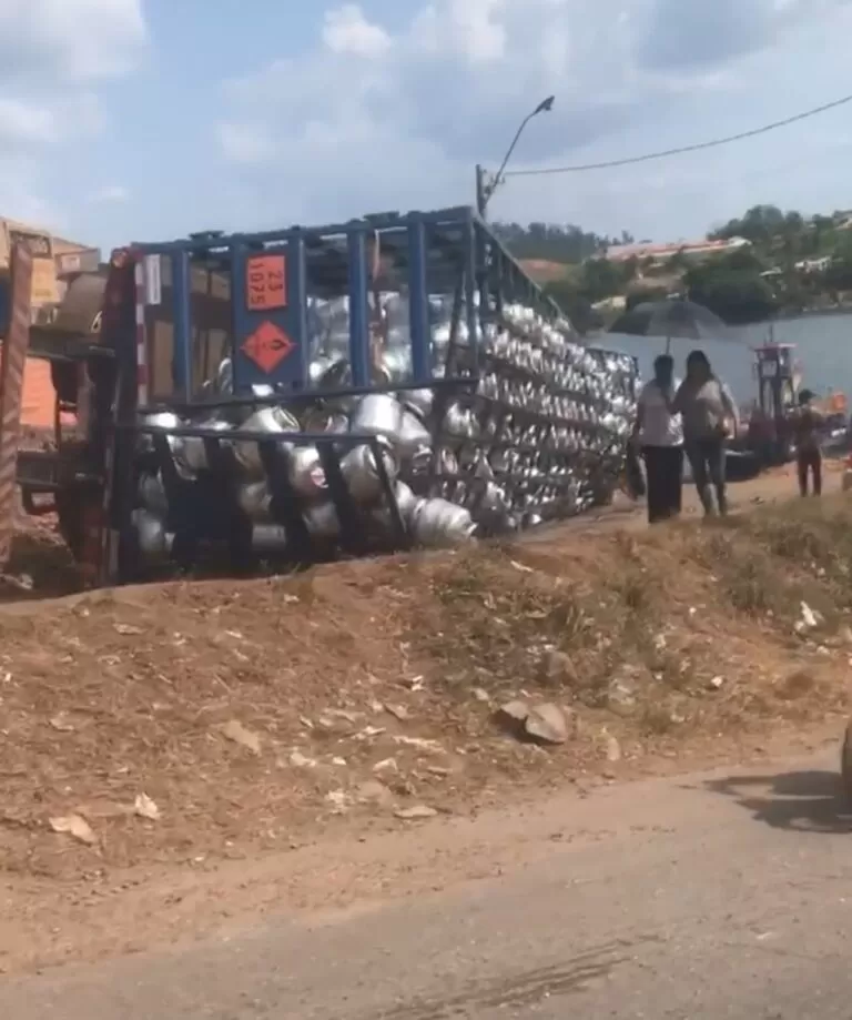 Anapu: carreta carregada de botijões de gás tomba na BR-230, em Belo Monte do Pontal