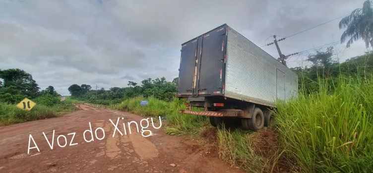 Brasil Novo: Caminhão baú colide com poste da rede elétrica às margens da BR-230