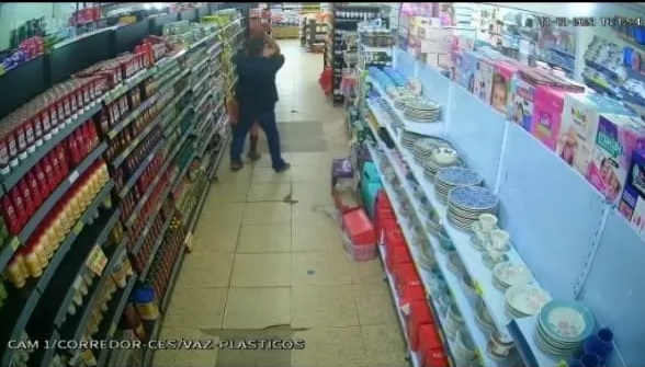 Ação foi flagrada por câmera de circuito de segurança na noite desta segunda-feira (10)