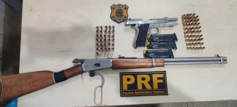 Brasil Novo: PRF recupera carro roubado e apreende armas na BR-230