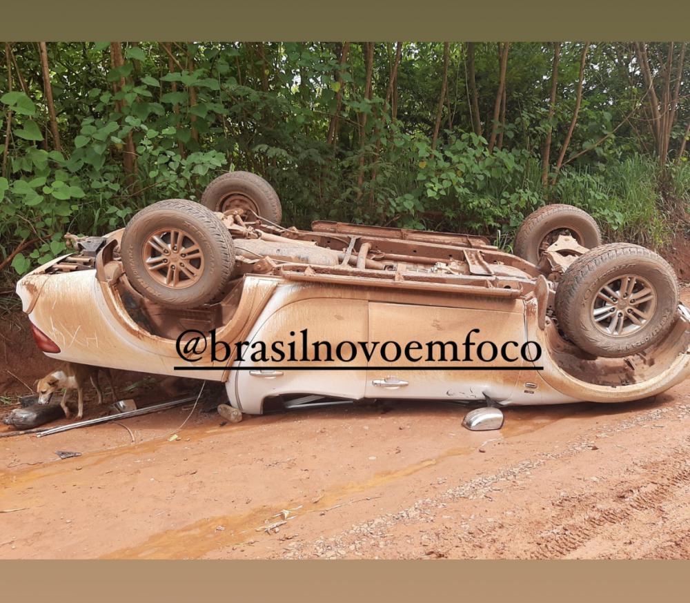 Caminhonete capota em estrada vicinal de Brasil Novo