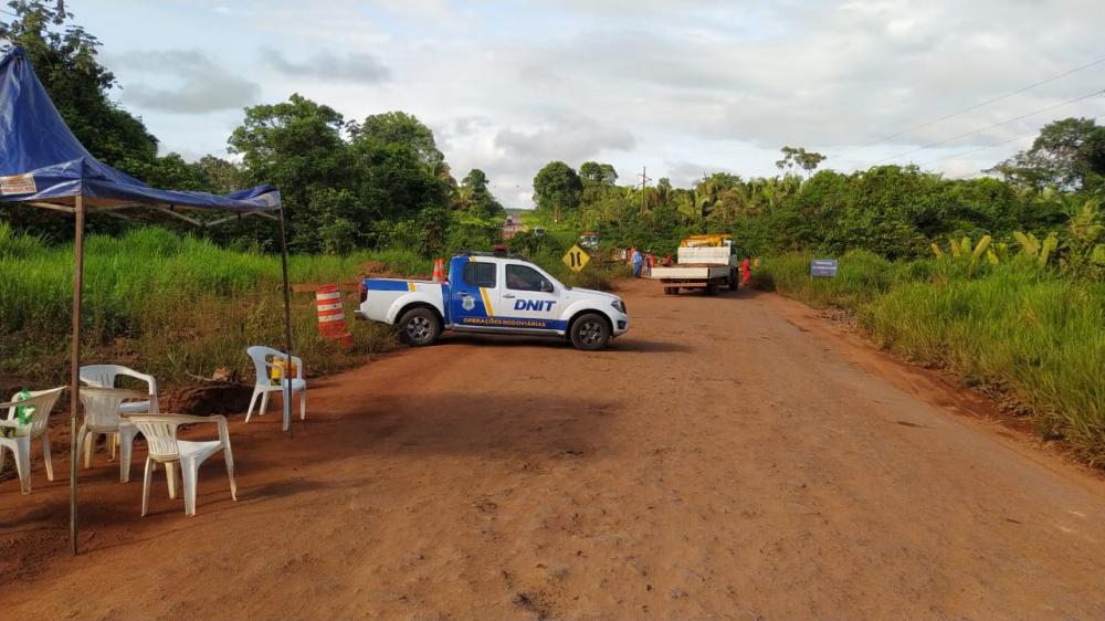 Brasil Novo: Obra do DNIT paralisa trânsito na BR-230