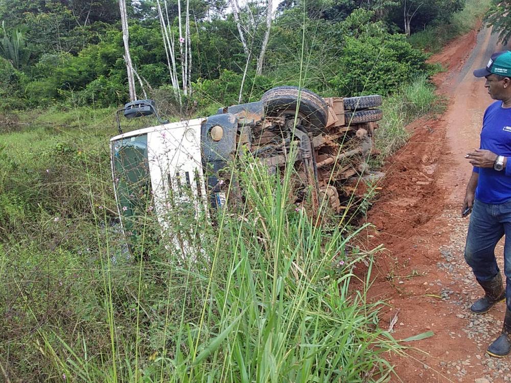 Caminhão tomba no ramal do Chicão em Brasil Novo