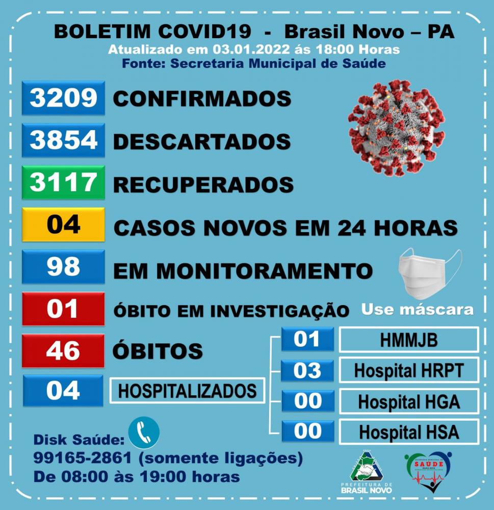 Em Brasil Novo, secretaria de saúde divulgou novo boletim epidemiológico do Covid-19