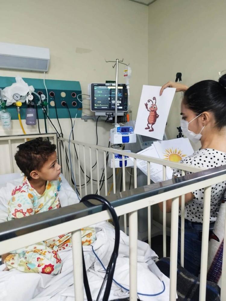 Voluntários percorrem leitos de internação levando alegria e conforto a crianças internadas na unidade.