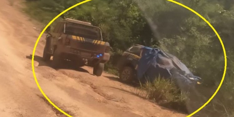 Viatura da PRF capota na BR-230, entre Itaituba e Jacareacanga, no PA