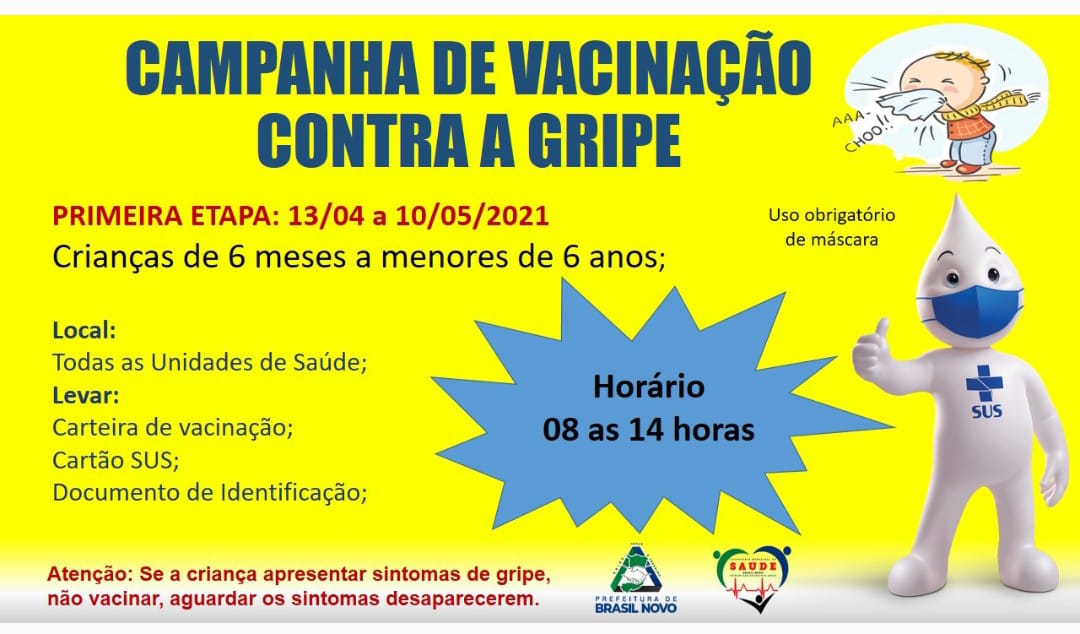 Em Brasil Novo, iniciou a vacinação contra gripe em crianças de 6 meses a menores de 6 anos de idade