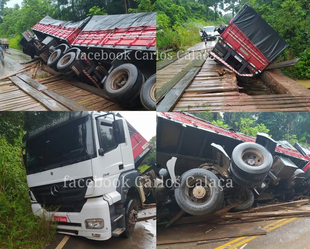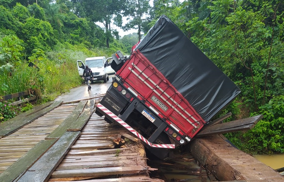 Motorista erra rota e tomba carreta em ponte que não suportou o peso