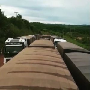 Um engarrafamento de caminhões carregados de soja na BR 230 no município de Miritituba, no interior do Pará, impedia a passagem de uma ambulância que fazia a transferência de um paciente, segundo informações preliminares, com a covid-19.