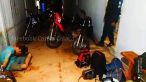 A Guarnição de serviços foi acionada para o apoio ao militares que em seguida se diligenciaram em direção dos Suspeitos que perceberam a aproximação da viatura e entraram em uma área de mata nas proximidades da balsa sendo capturado apenas um adolescente de 17 anos. Durante as diligências da Polícia Militar, foram recuperadas quatro motocicletas com pertences pessoais, sete aparelhos celulares, aproximadamente 300 gramas de substâncias aparentemente maconha, um revólver calibre 38 com duas munições intactas e um simulacro tipo pistola.