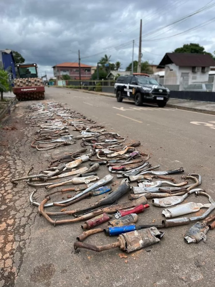 Os escapamentos destruídos foram apreendidos durante ações de combate a irregularidades de trânsito, principalmente relacionadas à poluição sonora e ao uso de equipamentos proibidos que alteram as características originais das motocicletas, causando transtornos à comunidade.