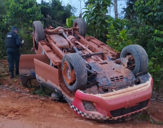 Viatura da Polícia Militar capota na Rodovia Transamazônica