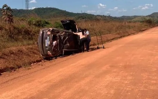 O automóvel Chevrolet Blazer, cor preta, teria capotado depois que o condutor perdeu o controle da direção