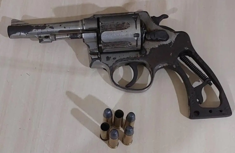 O segundo homem saiu da casa apontando uma arma de fogo na direção dos policiais