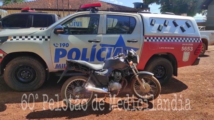 A motocicleta estava com um adolescente que foi conduzido para a Delegacia para prestar esclarecimentos.