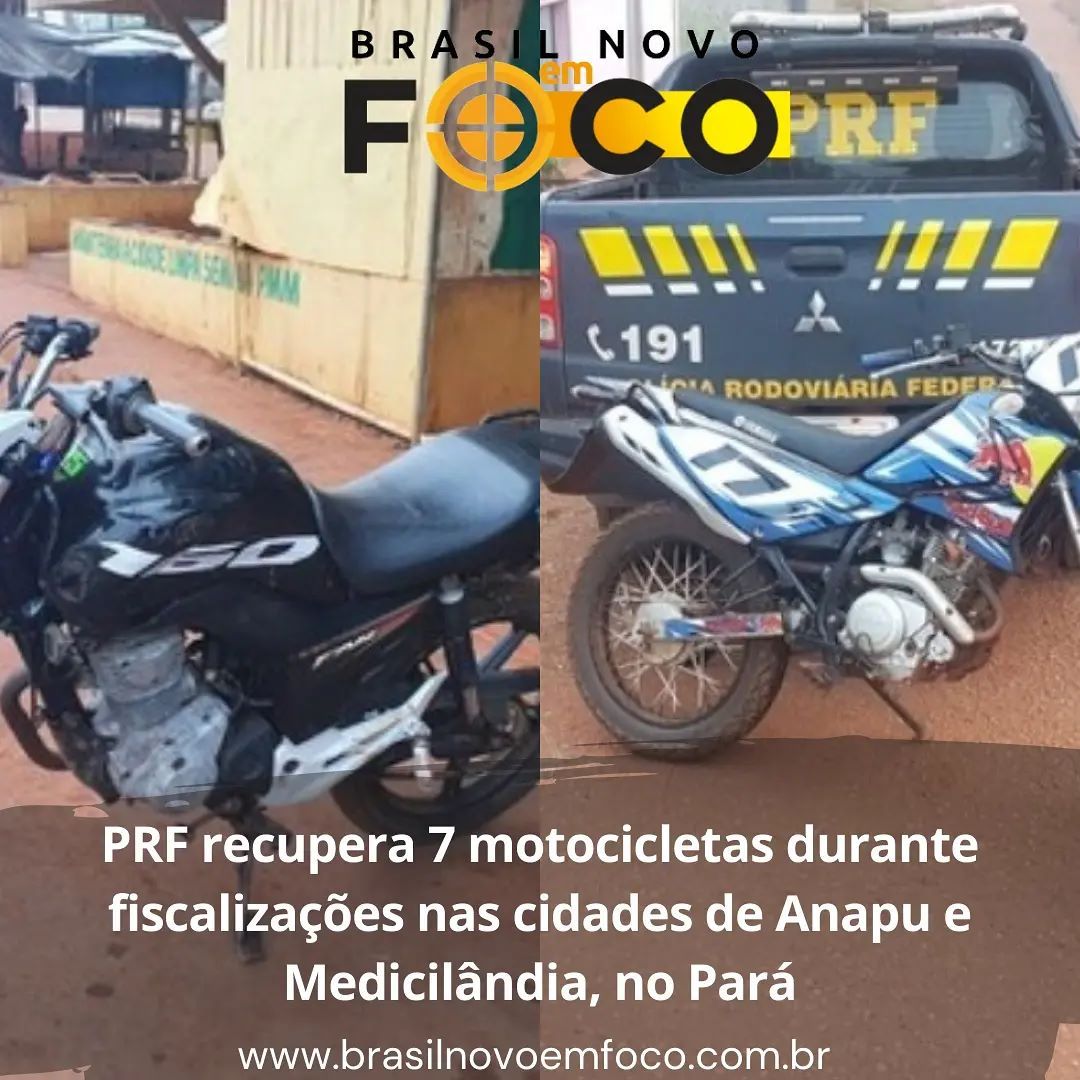 PRF recupera 7 motocicletas durante fiscalizações nas cidades de Anapu e Medicilândia, no Pará
