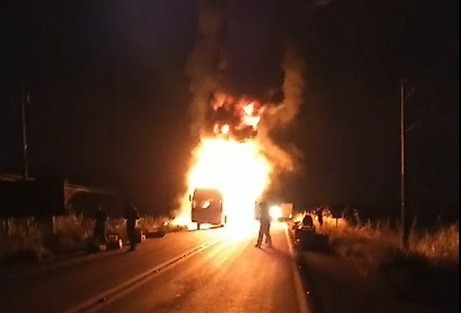 Ônibus que saiu de Altamira pega fogo na BR-230; veja vídeo