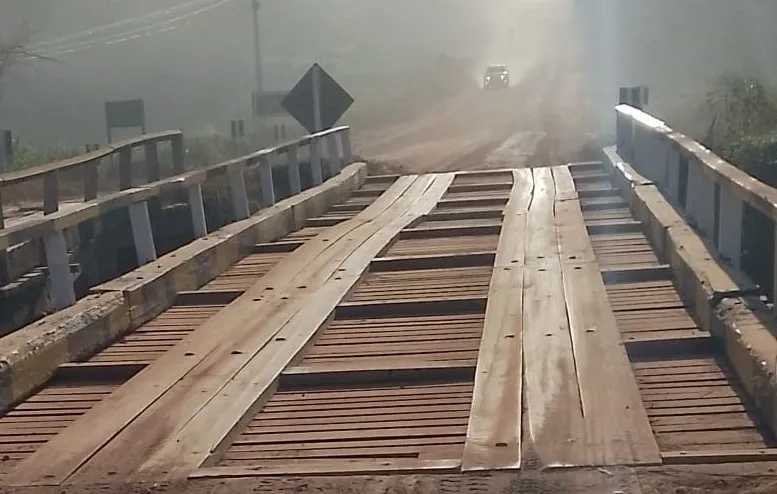Ponte que fica em frente o Bairro Cachoeirinha, havia ficado danificada após passagem de caminhão pesado